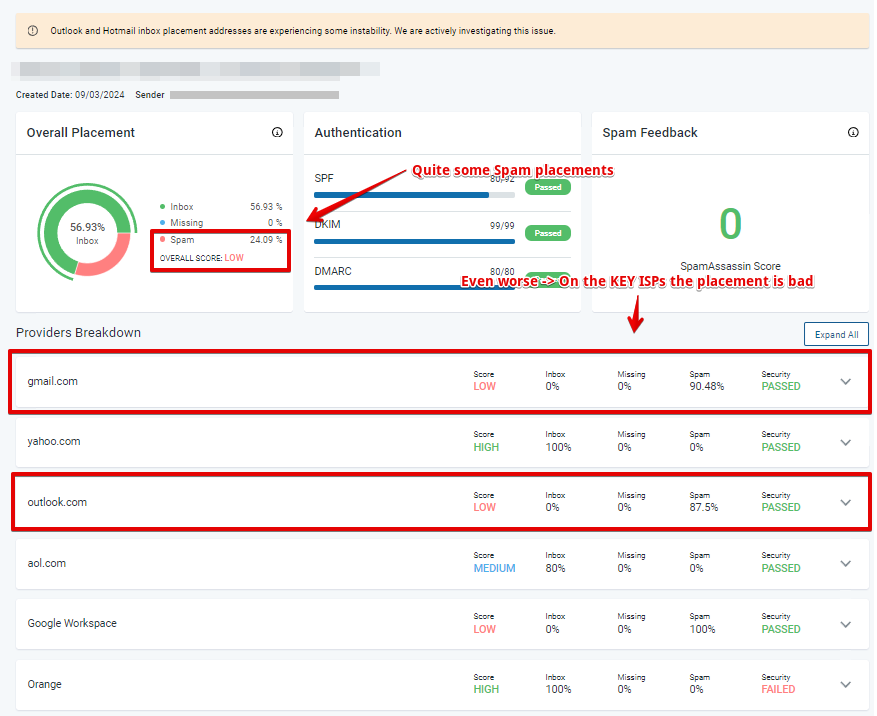 The science behind Email Deliverability & Inbox Placement is… Well, unpredictable to say the least. Each ISP has their own algorithms, spam filters, generic rules, and so on. More so, these things are “ever changing” - meaning -updated as we go along with new innovations in this segment. Keep in mind, ISPs also do not officially communicate their filters, rules & algorithms in this area, making it even more difficult to investigate & consult on specific steps.